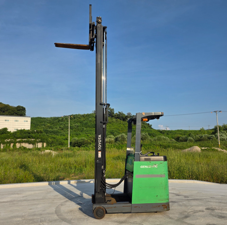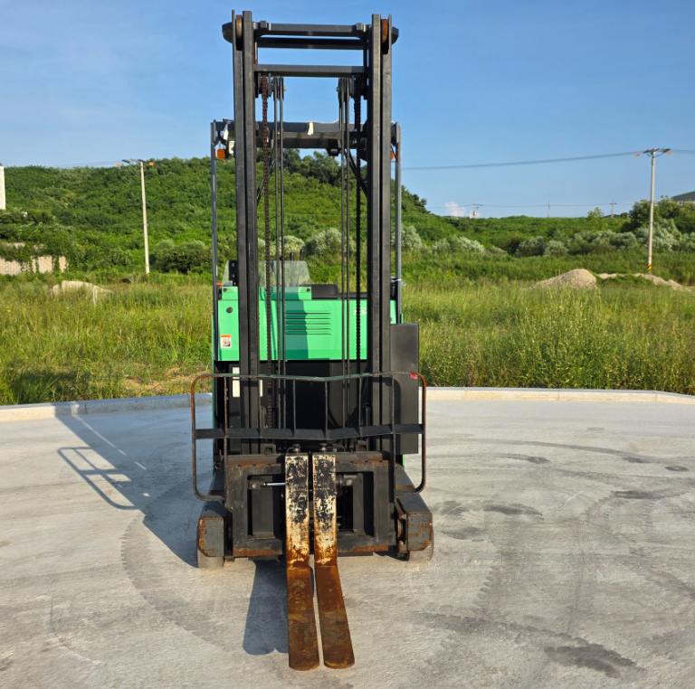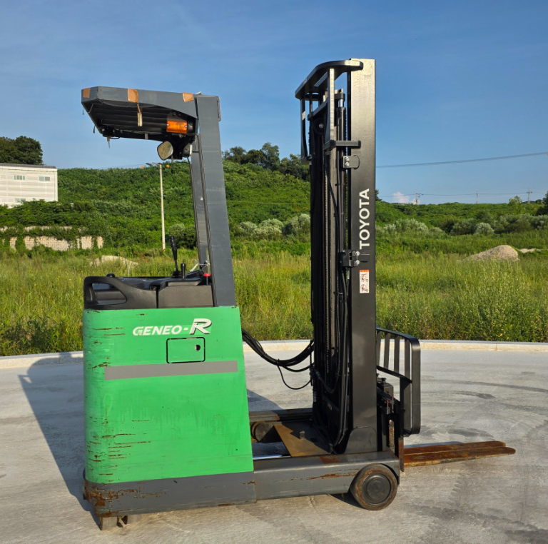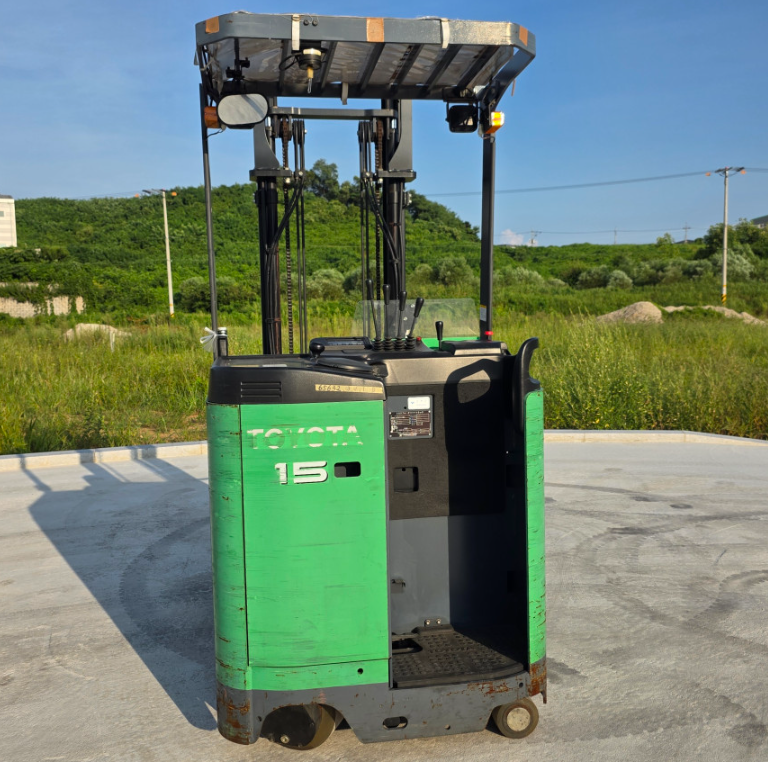 도요타 1.5톤 입식 전동지게차로 중량물 1.5톤까지 적재가 가능하며 협소한 공간에서 작은 회전반경으로 운행이 가능하여 소규모 창고나 통로에서 자유롭게 사용이 가능한 장비입니다.