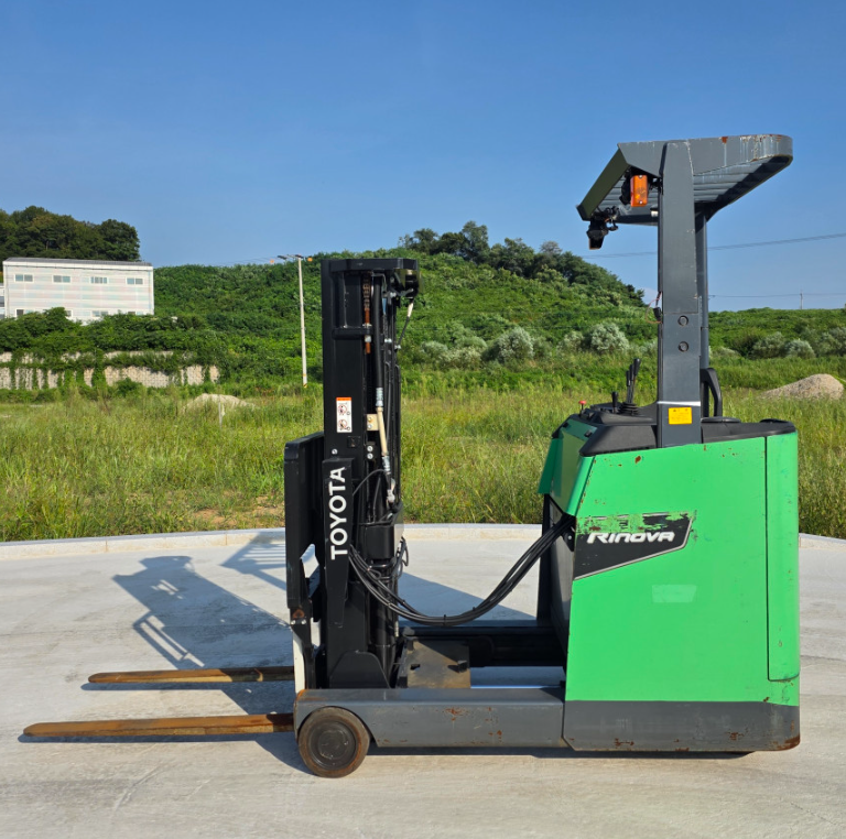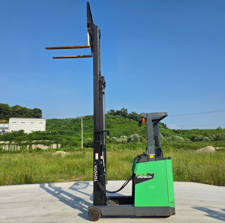 도요타 1.5톤 입식 전동지게차로 중량물 1.5톤까지 적재가 가능하며 협소한 공간에서 작은 회전반경으로 운행이 가능하여 소규모 창고나 통로에서 자유롭게 사용이 가능한 장비입니다.
