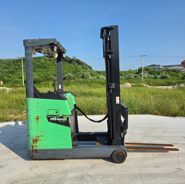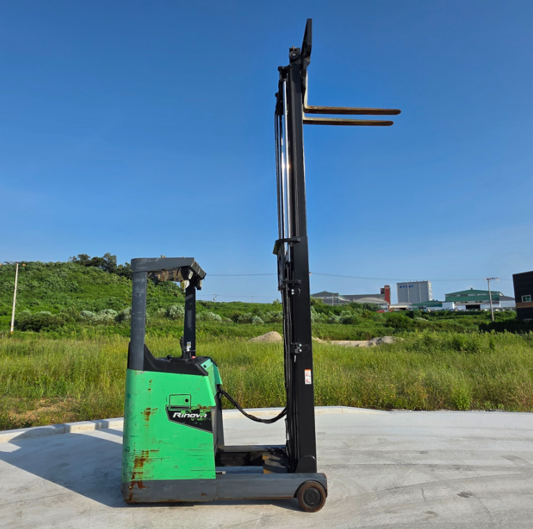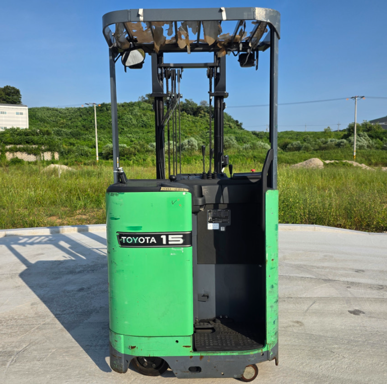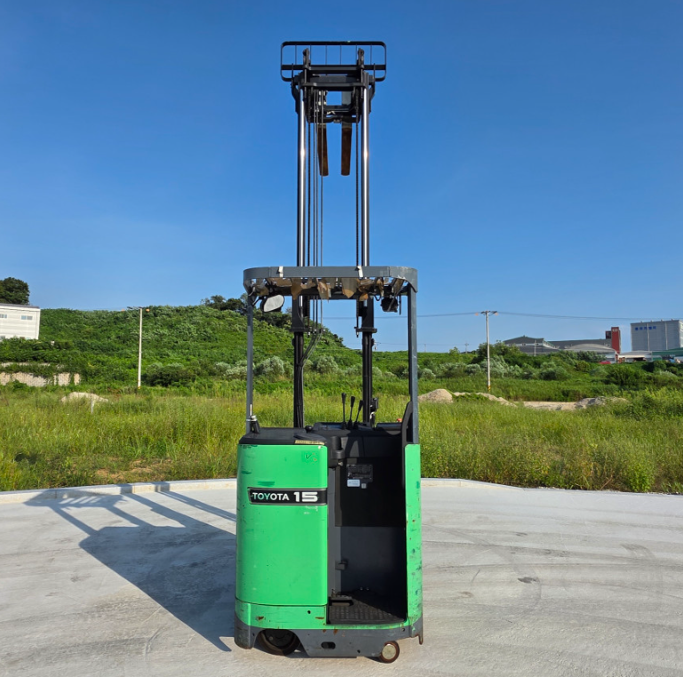 도요타 1.5톤 입식 전동 지게차로 중량물 1.5톤까지 적재가 가능하며 협소한 공간에서 작은 회전반경으로 운행이 가능하여 소규모 창고나 통로에서 자유롭게 사용이 가능한 장비입니다.