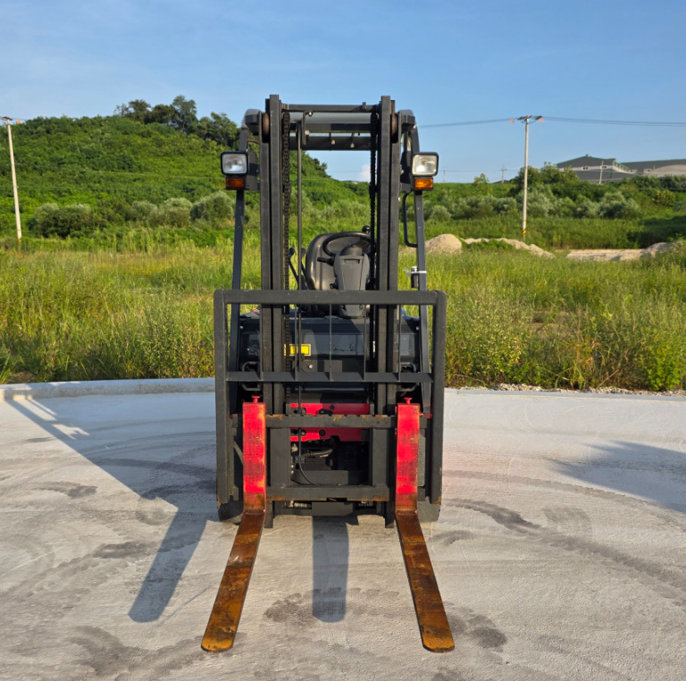 마스트 높이 2단 3M 높이는 포크 최대 상승 작업 높이이며 1.5톤 좌식 지게차 기본 스펙의 장비입니다.