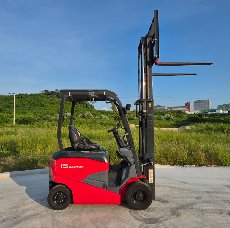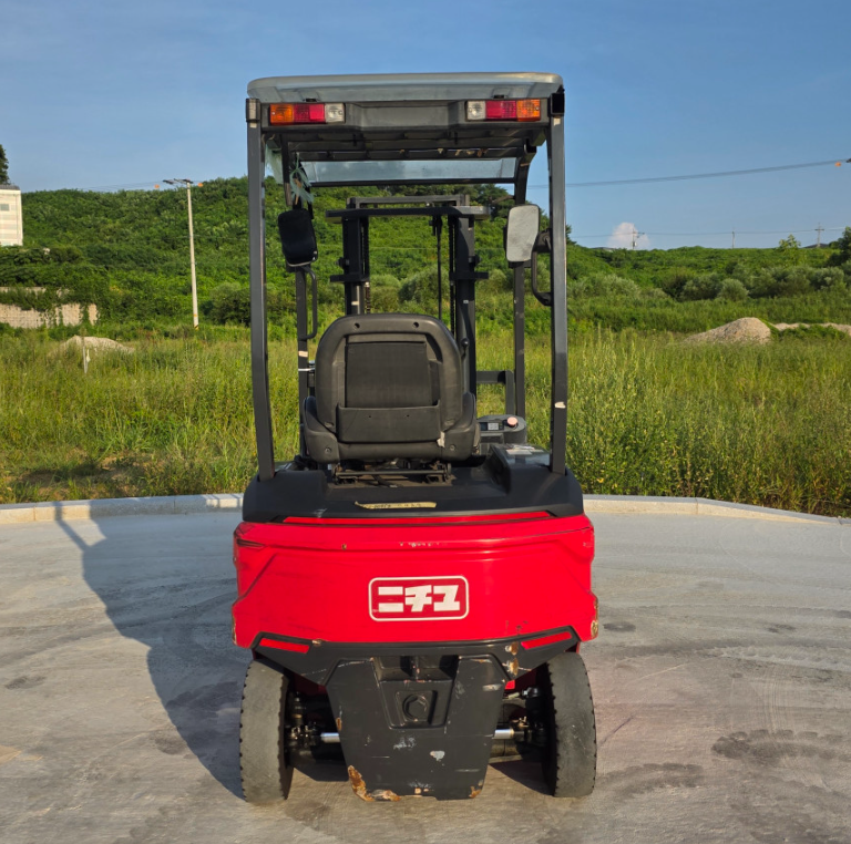 니찌유 1.5톤 좌식 전동 지게차로 중량물 1.5톤까지 적재가 가능하며 포크길이 1M 기본으로 장착하였습니다.