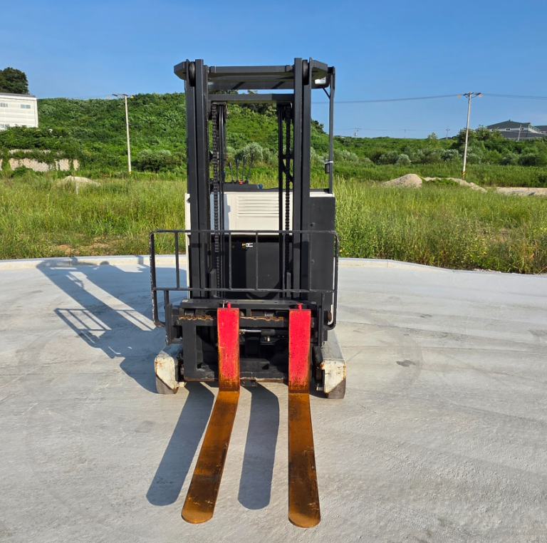 니찌유 2톤 입식 전동 지게차로 중량물 2톤까지 적재가 가능하며 포크길이 1M 기본으로 장착하였습니다.