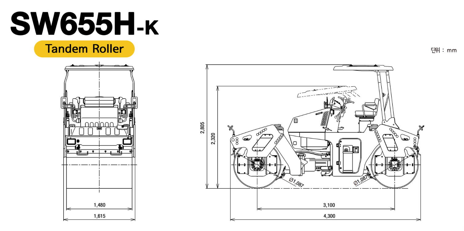 사카이 SW655H-K 탠덤롤러는 이중 스프링클러 시스템을 갖추고 있어