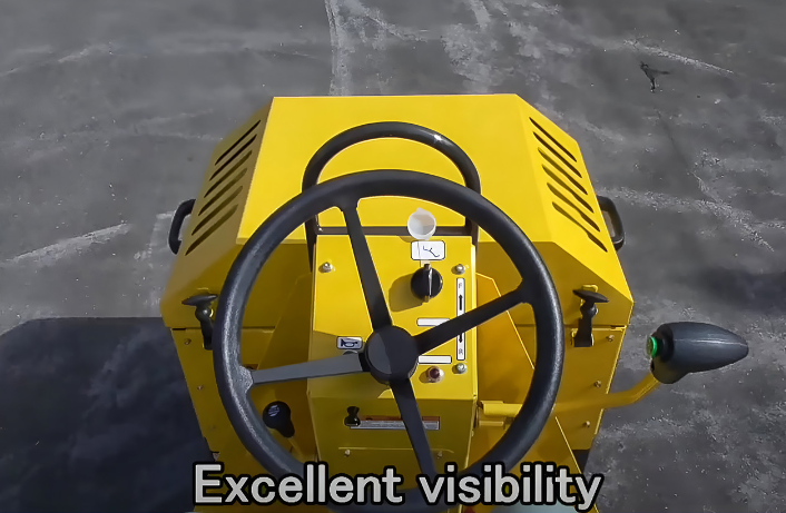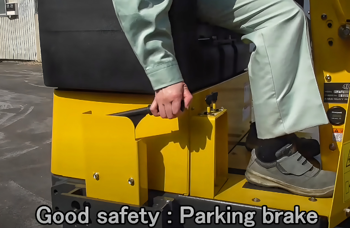 차량 탑승을 위한 스텝, 파킹 브레이크, 착석 자세에서 주변을 모두 살필 수 있는 넓은 시야,