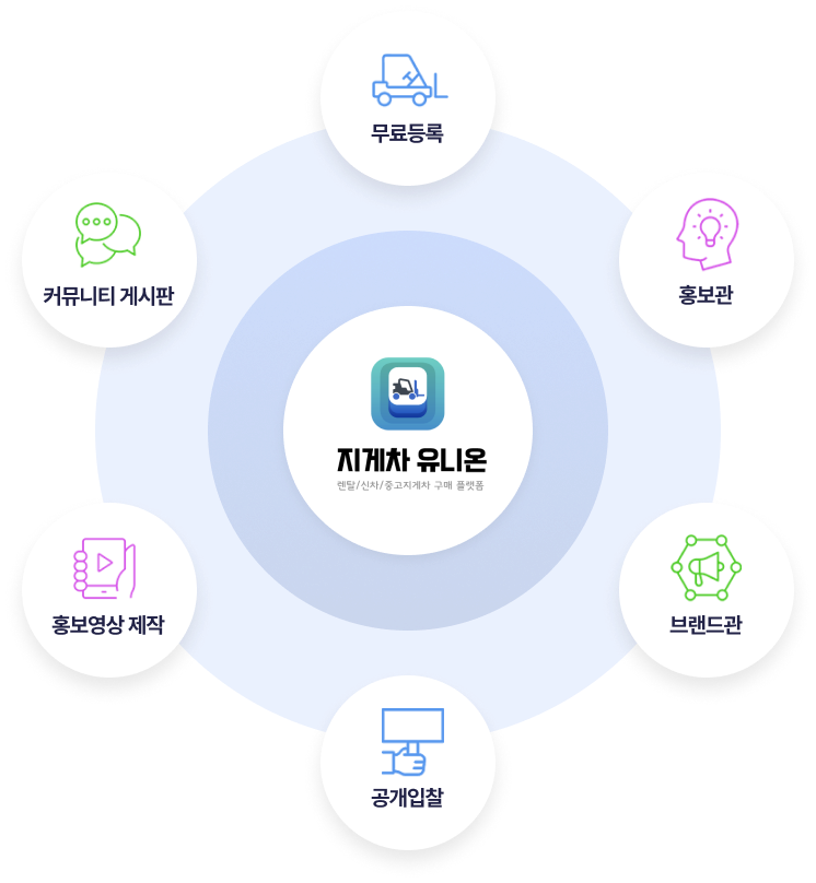 신차 및 중고 지게차 판매, 렌탈 서비스를 지원하며 구매자와 판매자를 연결합니다.